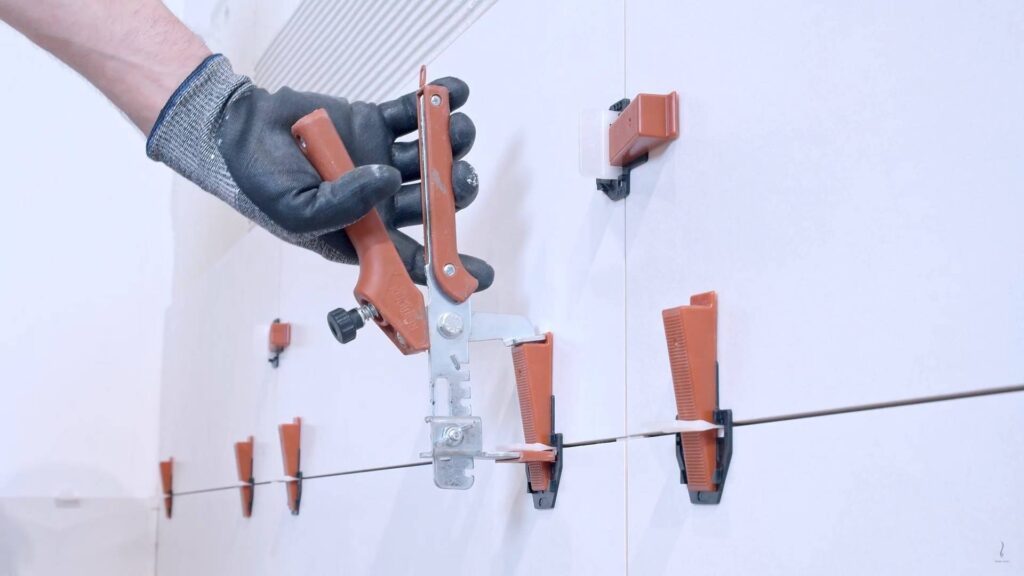 Răspândiți adezivul: Folosind o mistrie crestă, aplicați adezivul uniform pe perete, în secțiuni mici. Lucrați de jos în sus și de centru spre exterior, asigurând o acoperire completă și menținând grosimea constantă. Apăsați cu atenție fiecare placă în adeziv, folosind distanțiere pentru a menține o distanță uniformă între plăci. Utilizați o nivelă pentru a vă asigura că plăcile sunt drepte și uniforme, clemele de nivelare vă pot ajuta și în acest sens.